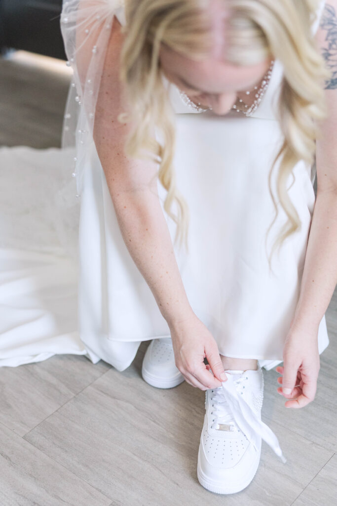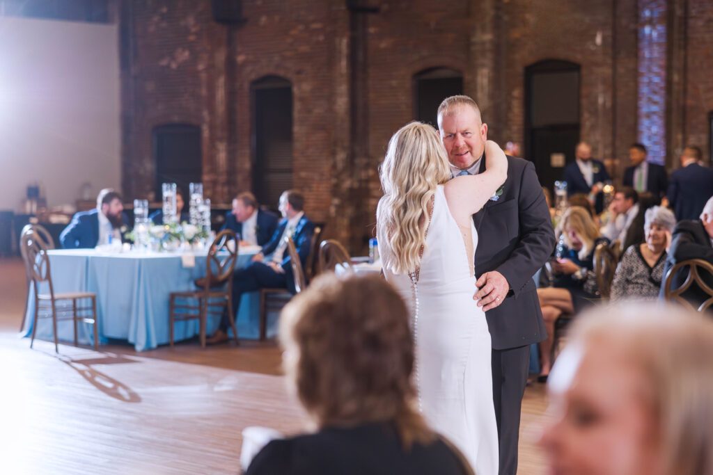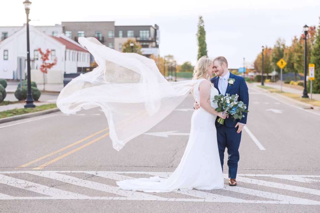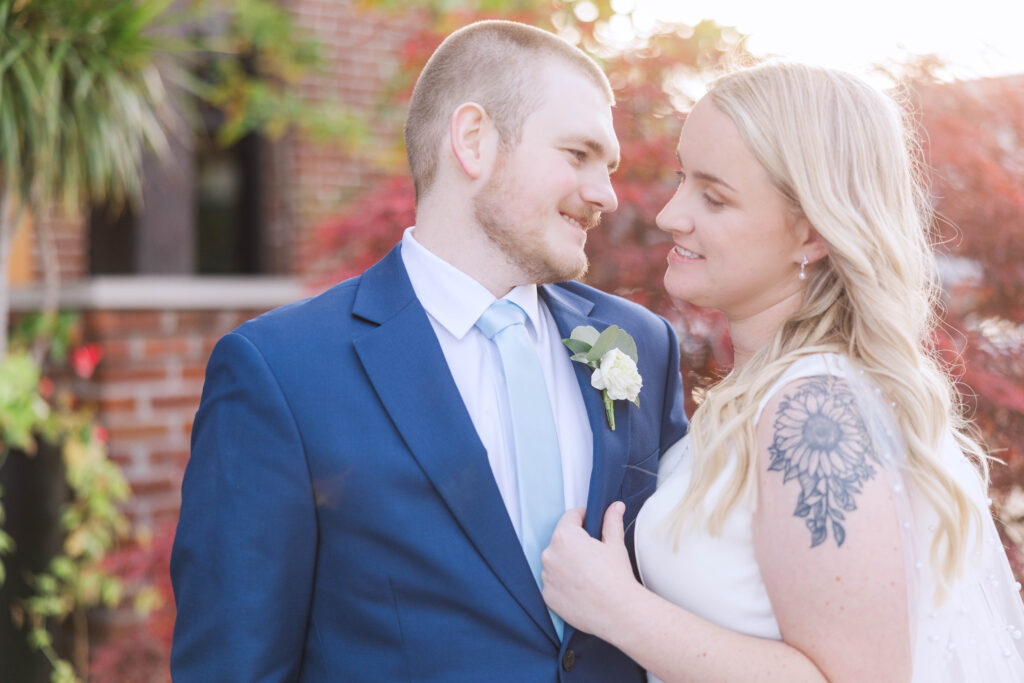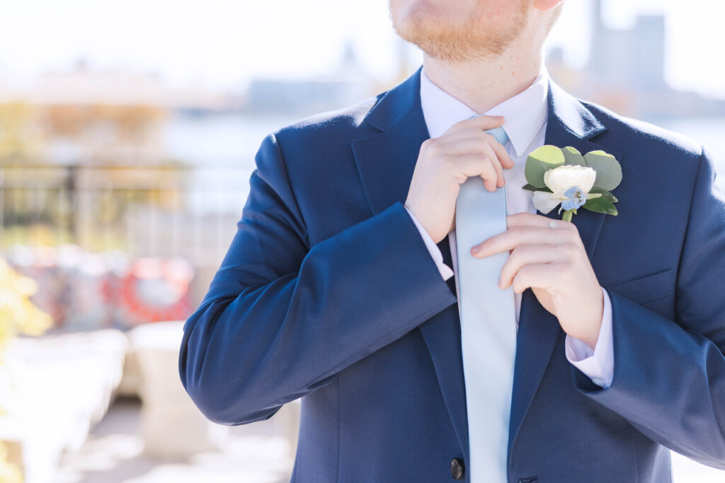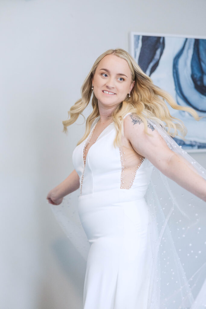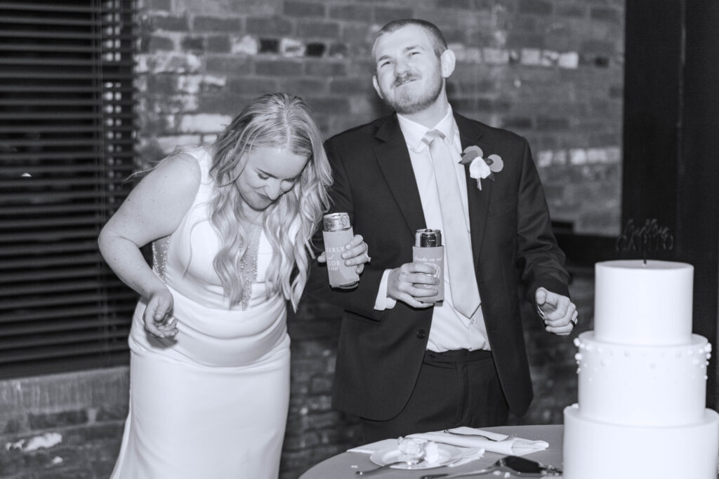 The Foundry itself was such a beautiful backdrop for their story. With its soft industrial touches and wide, open spaces, it gave their day a unique blend of warmth and modern charm. And just when I thought it couldn’t get better, we headed to the rooftop of Bolt and Tie for portraits — a lovely urban view with the city skyline stretching behind them. It felt like something out of a movie.